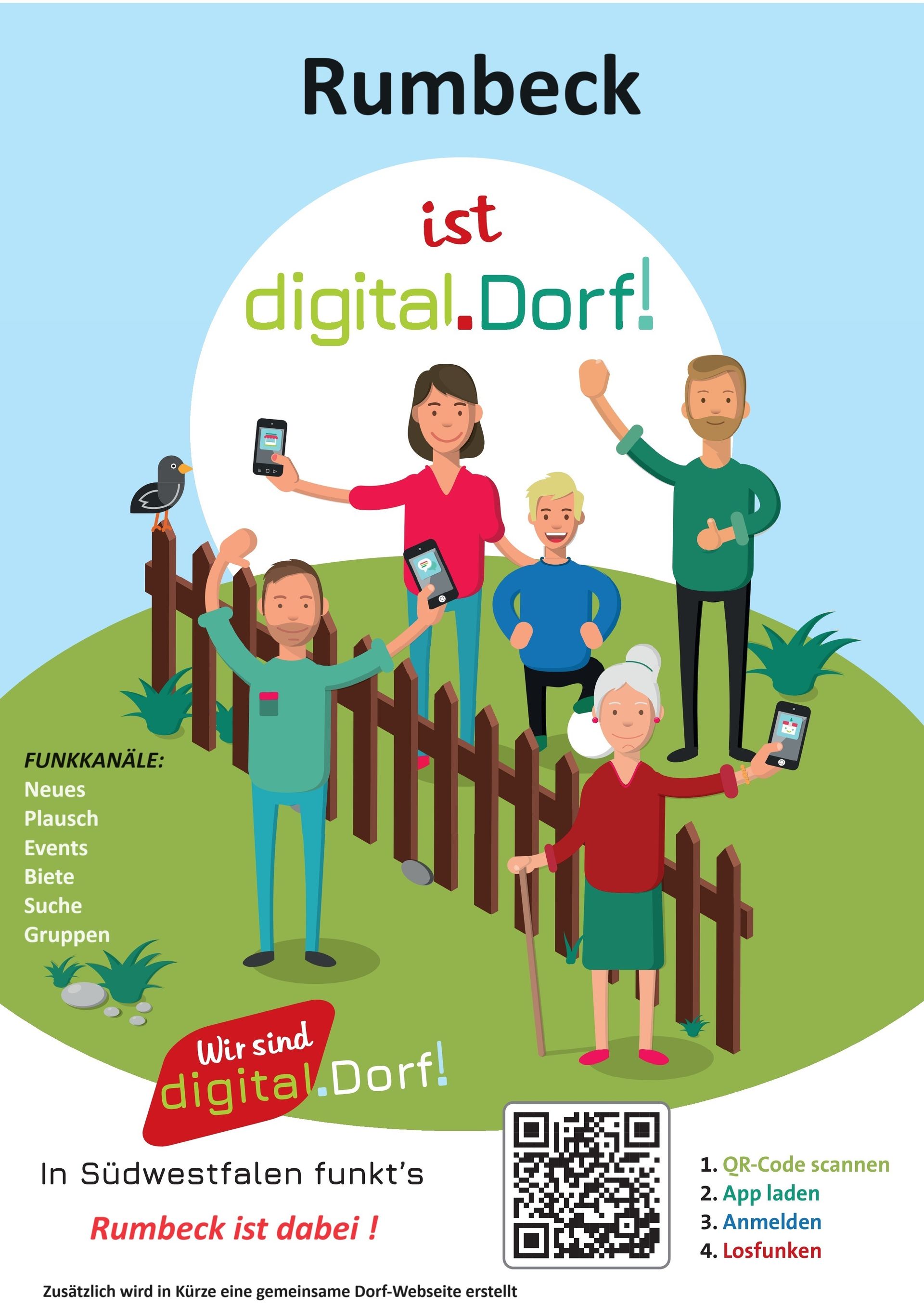 11. oktober 2023: Digitaliseringen af landsbyen Rumbeck fortsætter. En mobiltelefon-app kaldet "Village Radio" og en fælles hjemmeside for alle klubber i landsbyen Rumbeck skal oprettes. Udviklingen er i høj grad støttet af midler fra LEADER-projektet "DorfConnect: digital village networking". Rumbeck Landsby- og Klosterstøtteforening vil koordinere de nødvendige aktiviteter for Rumbecks foreningsring. Han står til rådighed som kontaktperson for institutionerne i landsbyen samt LEADER og Sparkassefonden. Det handler i bund og grund om at netværke i dit eget kvarter, præsentere landsbyens historie, annoncere nyheder og begivenheder og fremme et aktivt samarbejde. Disse er væsentlige dele af landsbylivet. I de senere år er digitale kommunikationsmidler blevet stadig vigtigere og giver en række muligheder for at styrke vores fællesskaber. Her er en kort en Erfaringsrapport (WDR Lokalzeit) fra Medebach-Deifeld : https://youtu.be/jZ8R3vntqyI?si=Pi8iswEfwCW3_Ycn