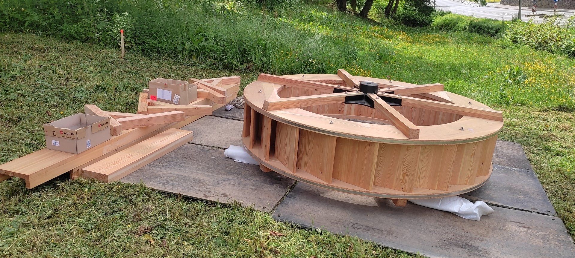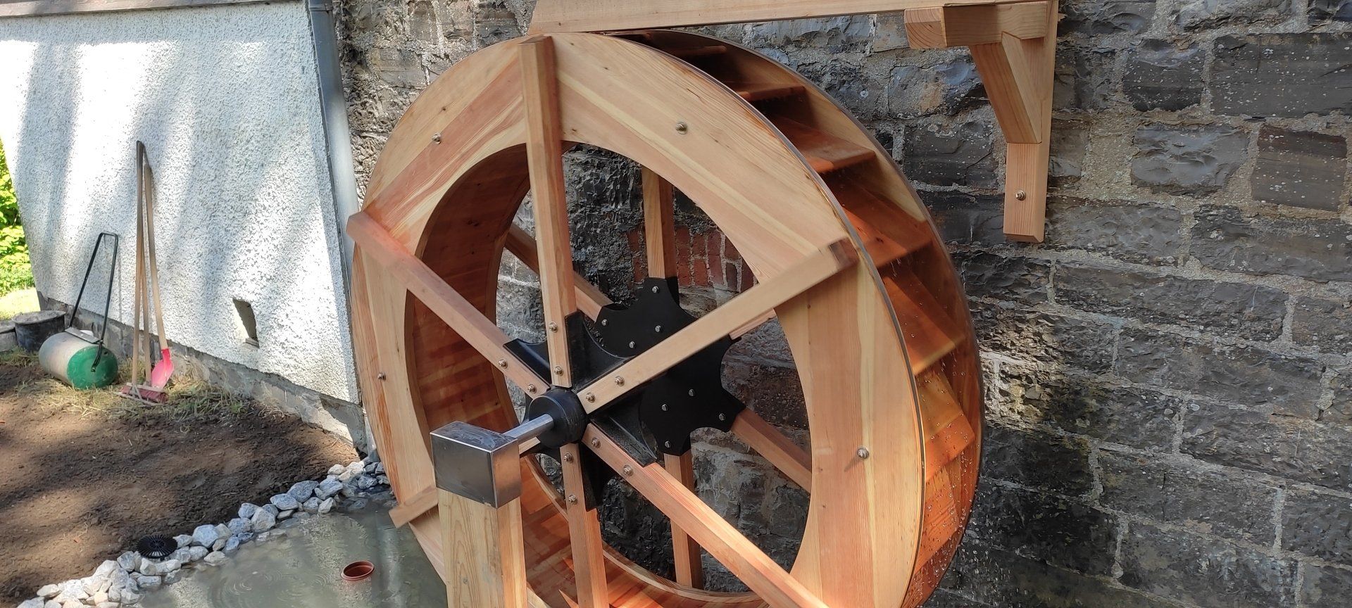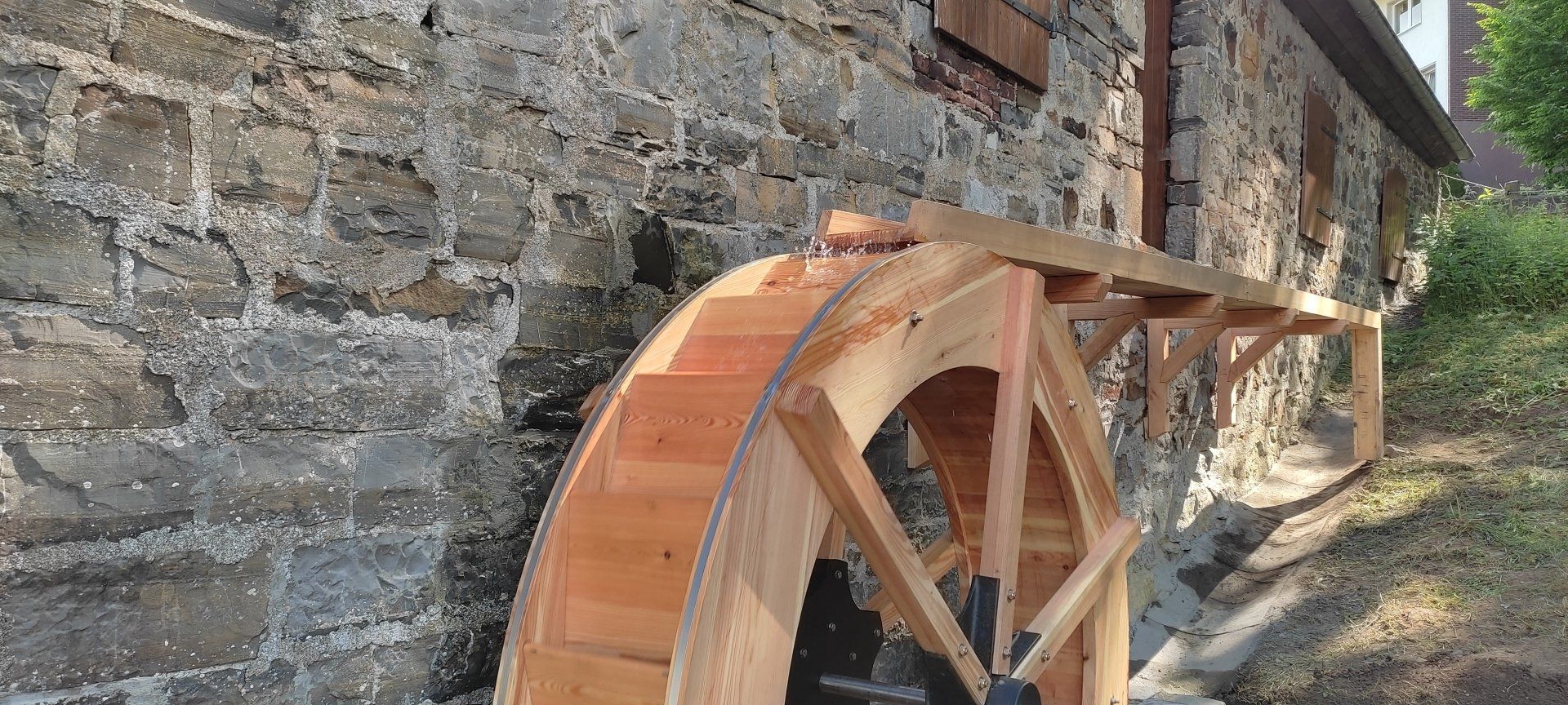 Estamos trabajando para que este conjunto de edificios vuelva a ser claramente visible como tal en el lugar. La instalación de la rueda del molino es la primera gran acción para ilustrar la historia: