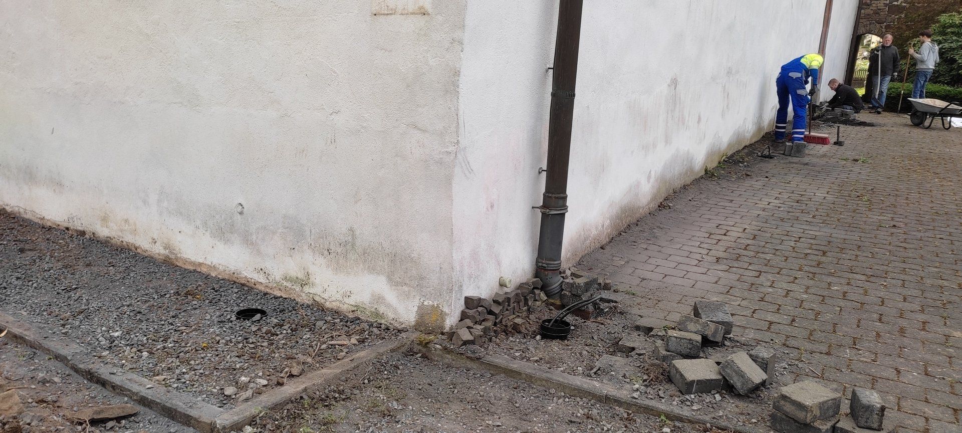 Gemeinsame Arbeitseinsätze fanden bereits in 2022 statt. In weiteren ehrenamtlichen Arbeiten unter Aufsicht von Fachleuten werden die Leuchten eingebaut, ein Sicherungskasten hinter der Orgel installiert und auf dem Dachboden der Kirche Kabel zu den Gauben gezogen.