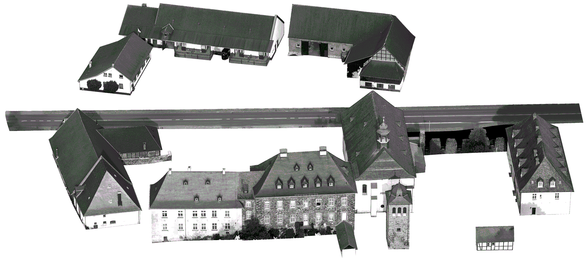 Kat planı, Premostensian manastırının 1804 yılında kaldırılmasından sonraki mevcut binalarını göstermektedir. 1827 yılına ait ayrıntılı bir harita, 1985 yılında orijinal el planları ve belgeler kullanılarak yeniden inşa edilmiştir. Buradan dinlenme alanındaki binaları, geniş ekonomik tesisleri ve gölet düzenini açıkça görebilirsiniz.